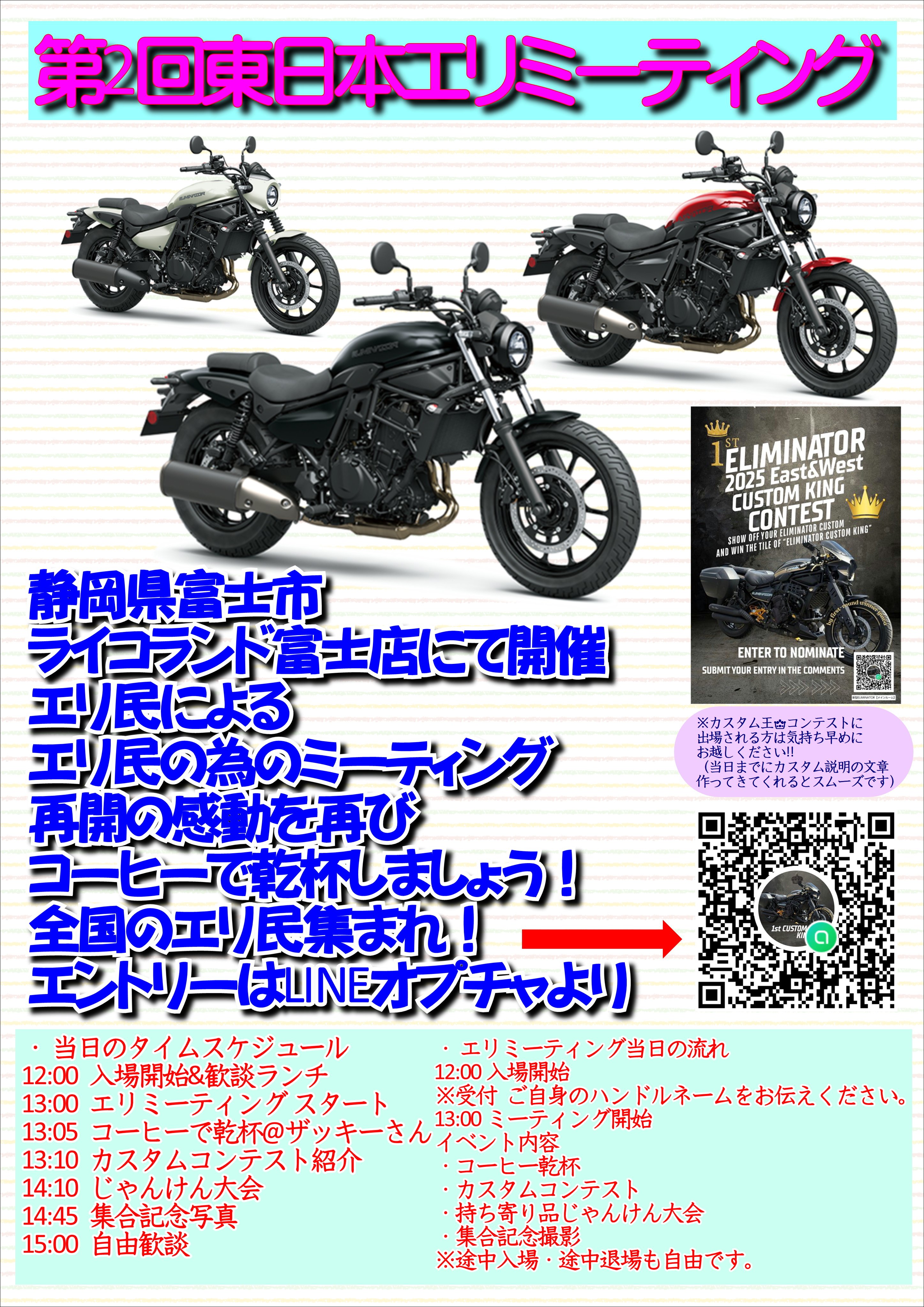 全国からエリミネーターオーナーの方が集結するので、SNS上では知っているあのバイクがくるかも!?なんて期待も膨らみますよね。