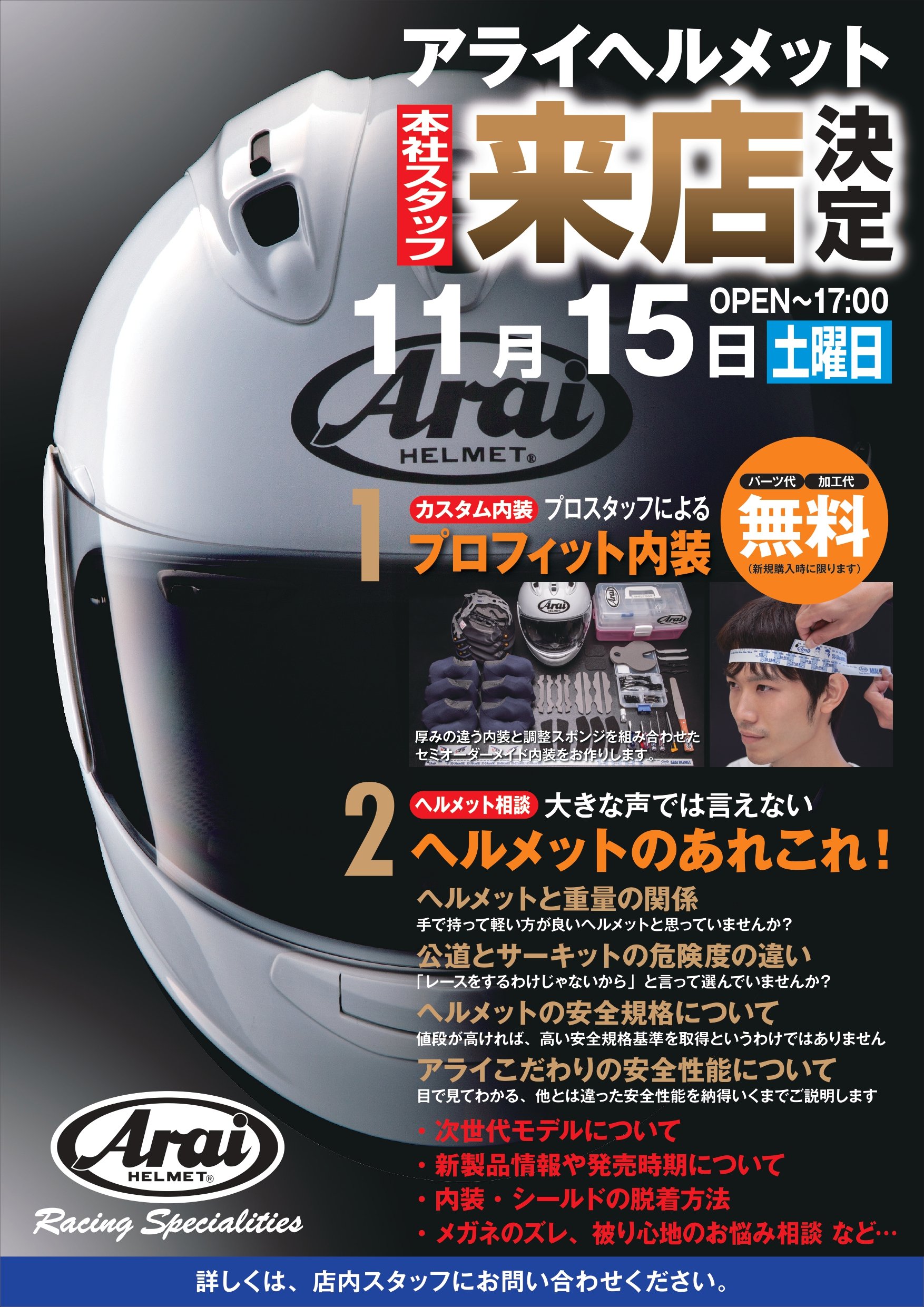 11月15日(土曜日)アライヘルメットスタッフ来店フィッティングイベント開催