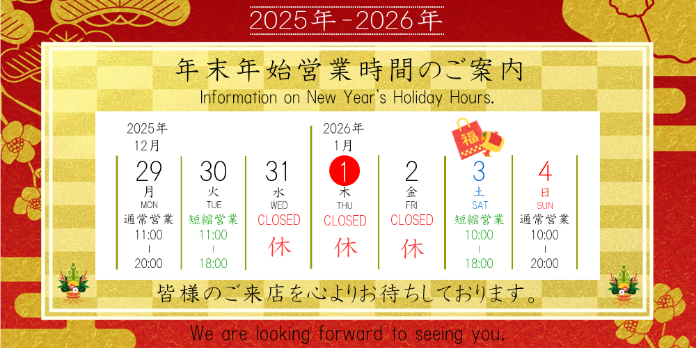平日:11:00~20:00、土日祝日:10:00~20:00