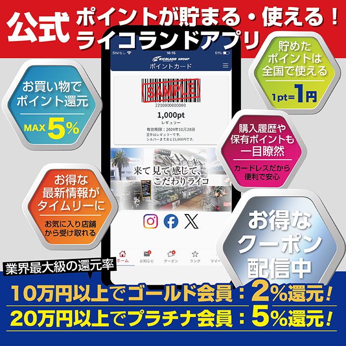 来て見て感じて、こだわりライコのバイク用品総合専門店「ライコランドグループ」が提供する会員アプリです。ポイントカードのシステムがデジタル会員へと変更となりました。
