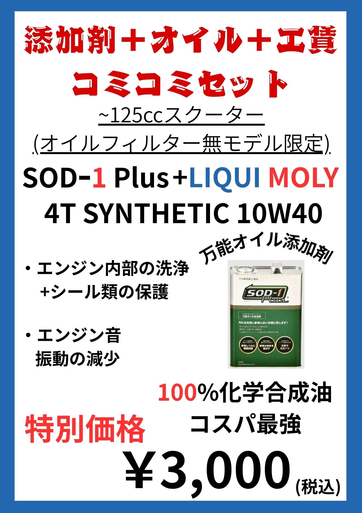 当店イチオシオイルとイチオシ添加剤のコミコミプランです。