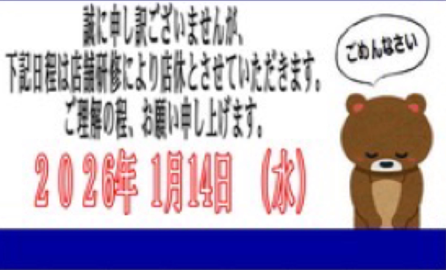 1月14日(水) 臨時休業のお知らせ