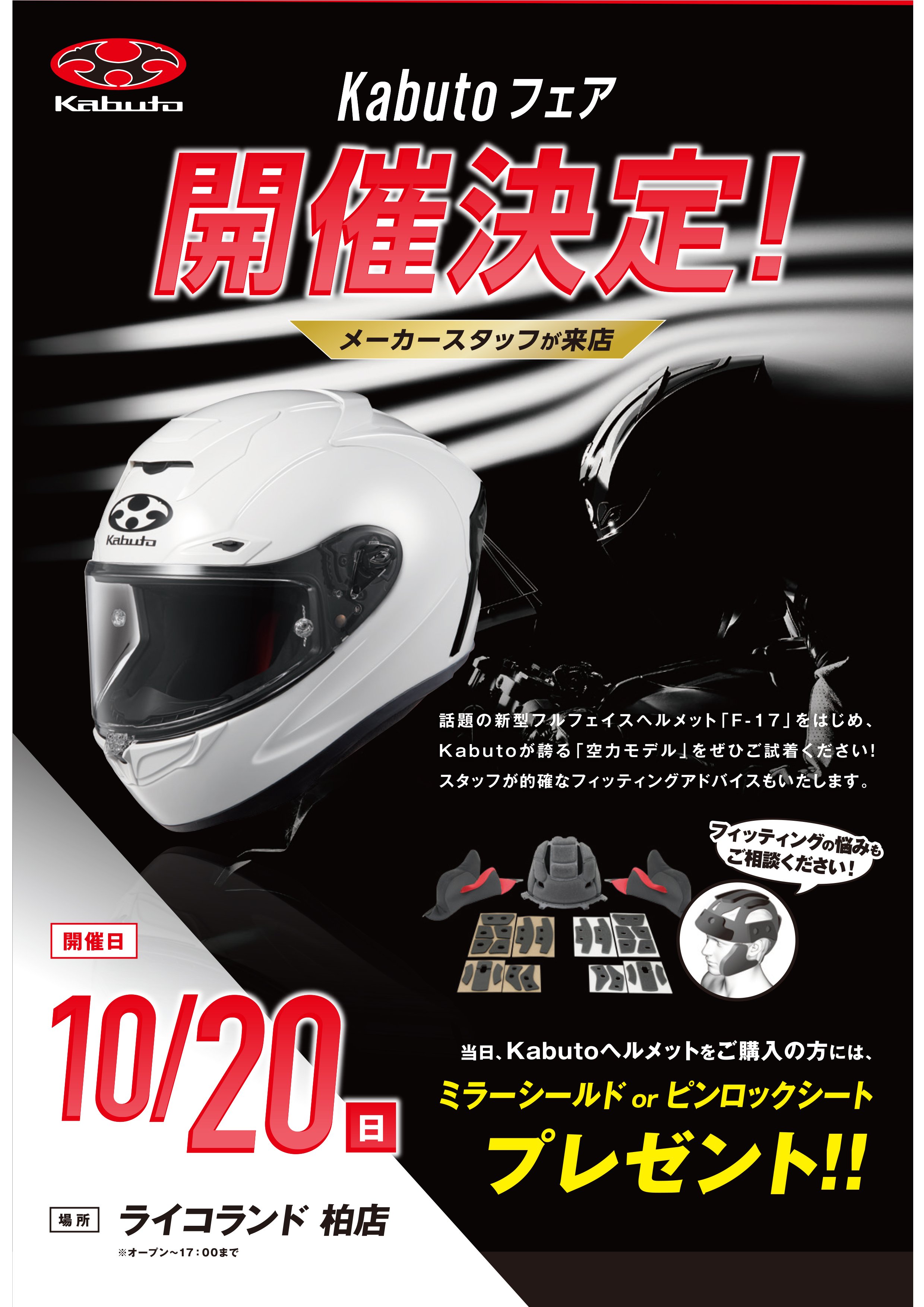 当日、Kabutoヘルメットご購入のお客様には