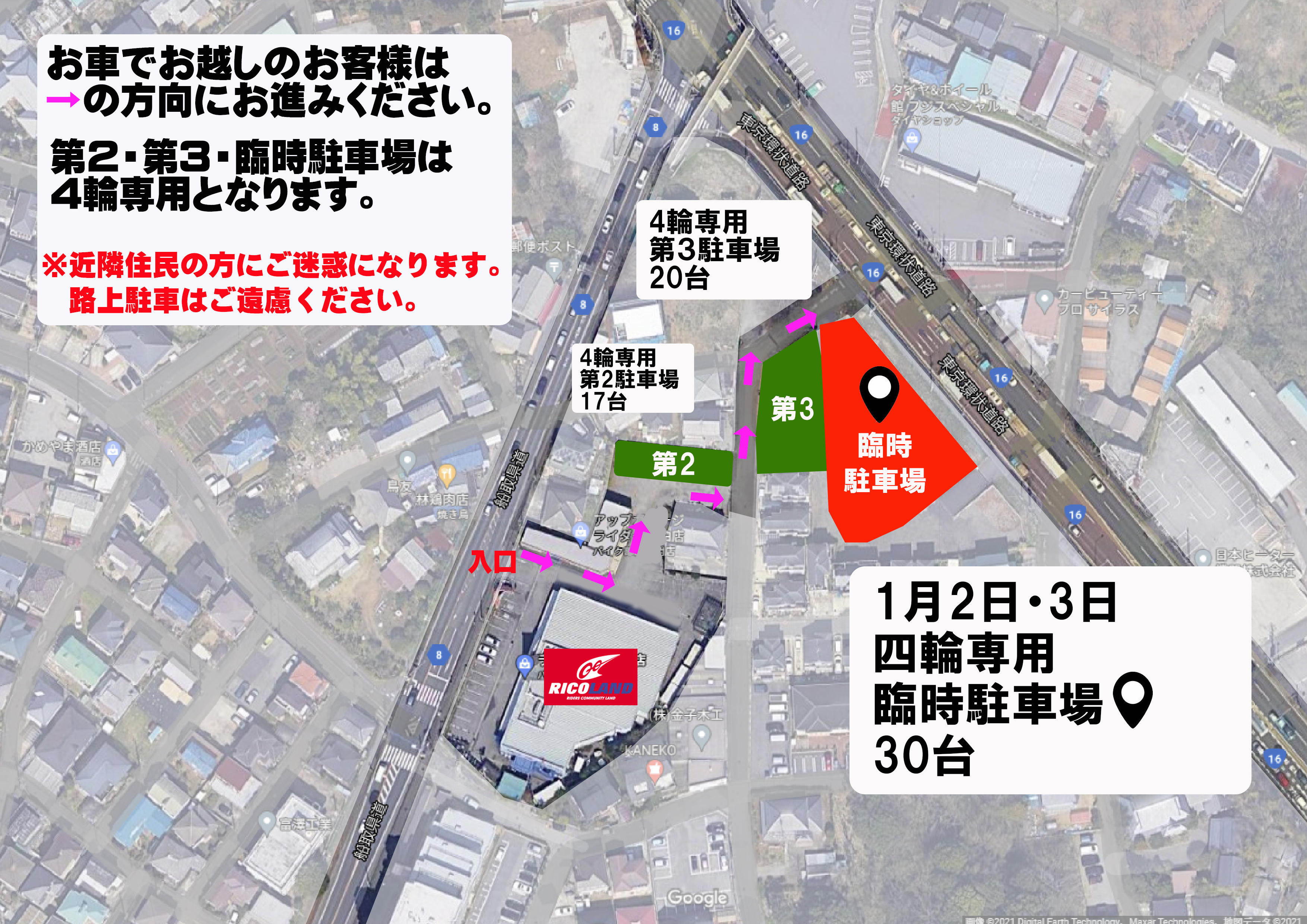 下記、店舗専用駐車場・臨時駐車場をご利用くださいませ。
